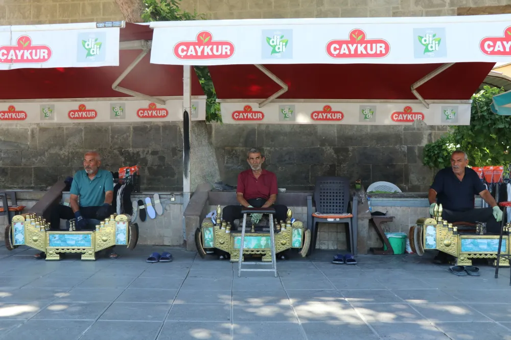 Babalarının 60 yıl ayakkabı boyacılığı yaparak ailesinin geçimini sağladığını belirten Okuducu, kalenin surları önünde çalışmaktan keyif aldığını söyledi.