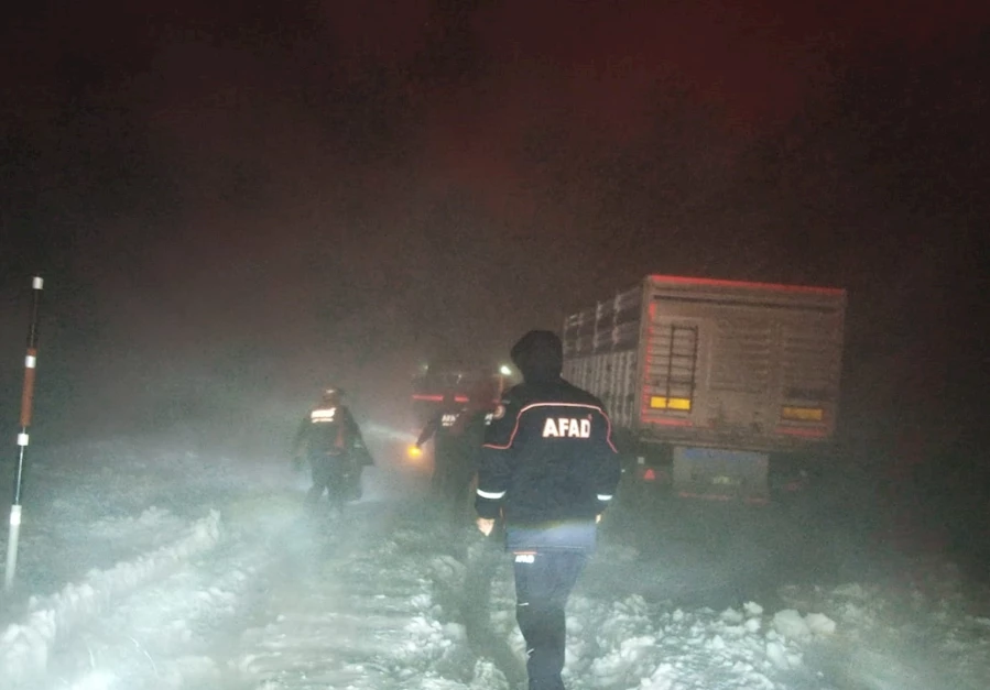 Yoğun kar yağışı nedeniyle ulaşıma kapanan Kayseri-Malatya kara yolunda mahsur kalan vatandaşları kurtarma çalışmalarını sürdüren AFAD, bir araçta mahsur kalan aileye ulaştı.