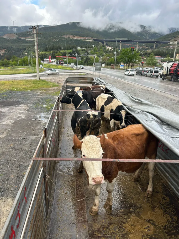 Hayvanların içinde bulunduğu araç Gaziantep'in Nurdağı ilçesinde durduruldu.