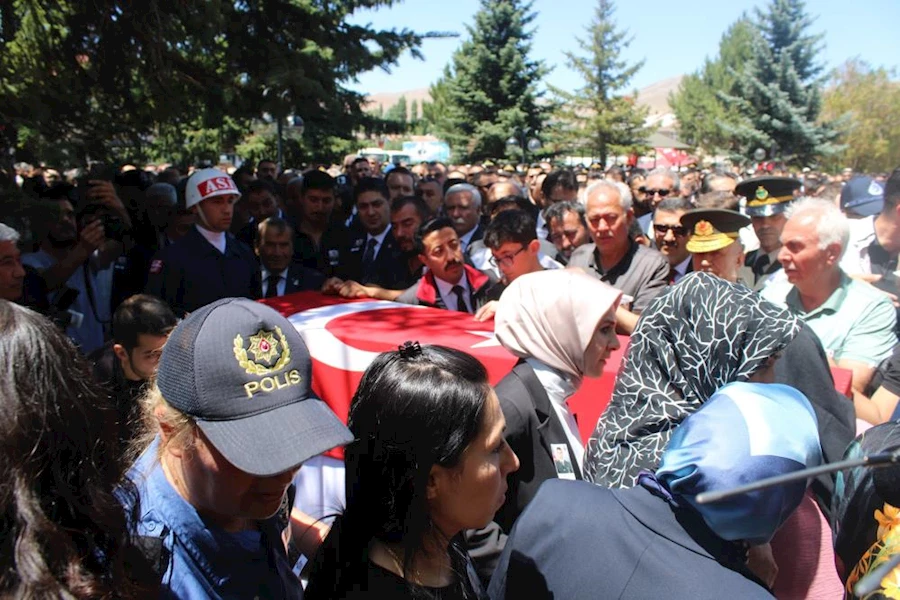 Cenaze törenine Aile ve Sosyal Hizmetler Bakanı Mahinur Özdemir Göktaş, Vali Gökmen Çiçek, AK Milletvekilleri, Kayseri Büyükşehir Belediye Başkanı Memduh Büyükkılıç, kurum kuruluş müdürleri, ilçe belediye başkanları, STK ve siyasi parti temsilcileri, Üzüm'ün ailesi, yakınları ve çok sayıda vatandaş katıldı. Bakan Göktaş, şehit Üzüm'ün oğluna sarılarak başsağlığı diledi. Şehit Üzüm'ün yakınları, Türk Bayrağına sarılı tabuta sarılıp gözyaşı dökerken, bir yakını ise komutanlara seslenerek, "Ümit öldü ancak ümitler ölmez" dedi.