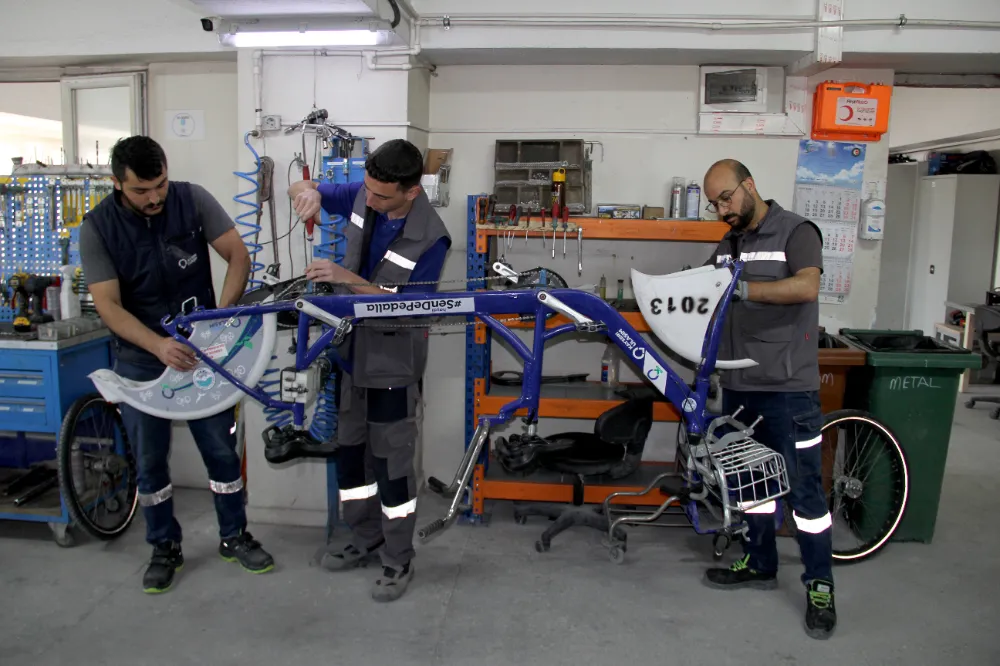 Kayseri Büyükşehir Belediyesi Ulaşım AŞ ekipleri, Kayseri Bisiklet Paylaşım Sistemi istasyonlarında hizmet veren ekonomik ömrünü tamamlamış bisikletleri geri dönüştürerek tandem bisiklet üretiyor. Detaylar Kayseri Haber'de...