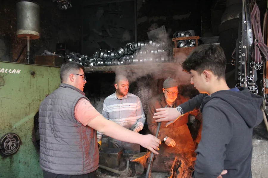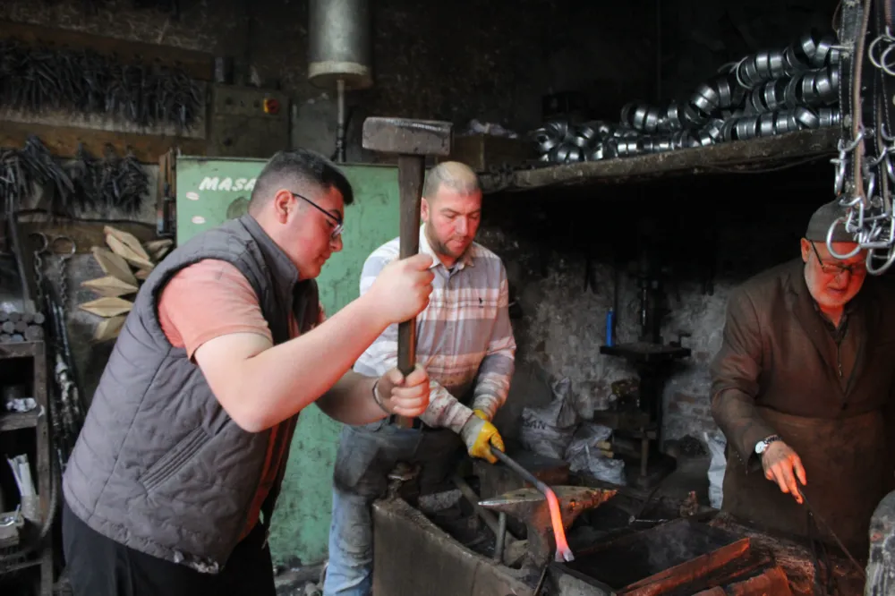 Çıraklık Okulu’nda eğitim gören Ahmet Hayri Paslıoğlu ise demircilikle küçük yaşlarda tanıştığını belirterek, “Demir sıçraması, ateş, sıcak demirle çalışmak zor ama severek yapıyorum. Babamın demiri ocaktan çıkarıp dövmesini izlerken bu mesleğe aşık oldum. Helal kazanç için çalışıyoruz. İnşallah bu mesleği gelecek nesillere taşıyacağız” ifadelerini kullandı.
