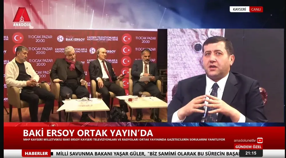 Milliyetçi Hareket Partisi Kayseri Milletvekili Baki Ersoy, Kayseri televizyonları ve radyolarının ortak canlı yayınında dikkat çeken açıklamalarda bulundu. Yerel yönetimlerden Kayserispor’a kadar birçok başlıkta değerlendirmelerde bulunan Ersoy, özellikle Bünyan Belediyesi ile ilgili sözleriyle gündem oldu.