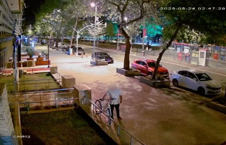 Bu arada, bisikletin çalınma anı bir binanın güvenlik kamerasına yansıdı.
