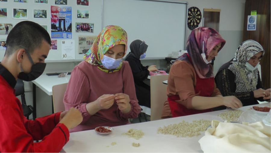 Kayseri’nin Melikgazi ilçesinde bulunan İstiklal Özel Eğitim Meslek Okulu öğrencileri, telafi eğitimlerinde velileri ve öğretmenleri ile birlikte atölyelerinde hem mantı sıktılar hem de saç kesimi yaptılar.