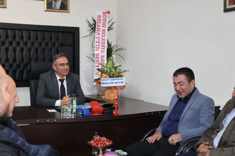 Ziyaretle ilgili değerlendirmede bulunan Başkan Selahattin Metin, “Göreve yeni başlayan AK Parti Bünyan İlçe Başkanımız Sayın Faruk Gümüş’e hayırlı olsun dileklerimizi ilettik. İlçemiz için birlik ve beraberlik içerisinde yürütülecek çalışmalar üzerine verimli bir görüşme gerçekleştirdik. Kendisine yeni görevinde başarılar diliyorum” ifadelerini kullandı.