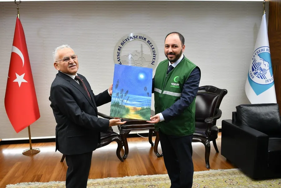 Nazik ziyaretleri dolayısıyla Mustafa Demir ve yönetimine teşekkür eden Büyükkılıç, yeni görevlerinde başarılar diledi. Ziyaret kapsamında, Yeşilay danışanları tarafından hazırlanan özel bir tablo da Başkan Büyükkılıç’a takdim edildi.