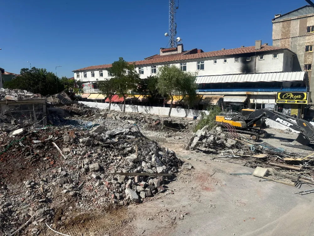 6 Şubat 2023'teki depremlerde ağır hasar alan, 28 işyerinin bulunduğu tarihi çarşının yeniden inşası için batı bloklarının yıkımı yapıldı.