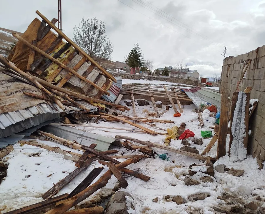 Kayseri’nin Develi ilçesinde etkili olan şiddetli rüzgar, bir besi işletmesinin çatısının uçmasına neden oldu.
