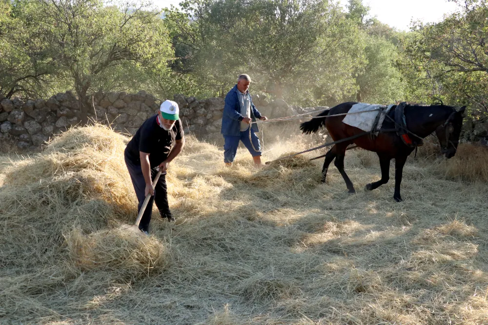 Cafer Günek de arkadaşlarıyla aralarında iş bölümü yaptıklarını, dönüşümlü olarak düven sürdüklerini ve yabayla sapları savurduklarını ifade etti.