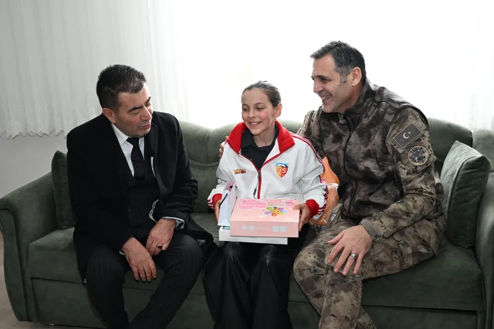 Gerçekleştirilen ziyarette İl Emniyet Müdürü Atanur Aydın, şehidin kızı Zeynep Ersoy’a karne hediyesi olarak Kayserispor forması ve oyun seti takdim etti.