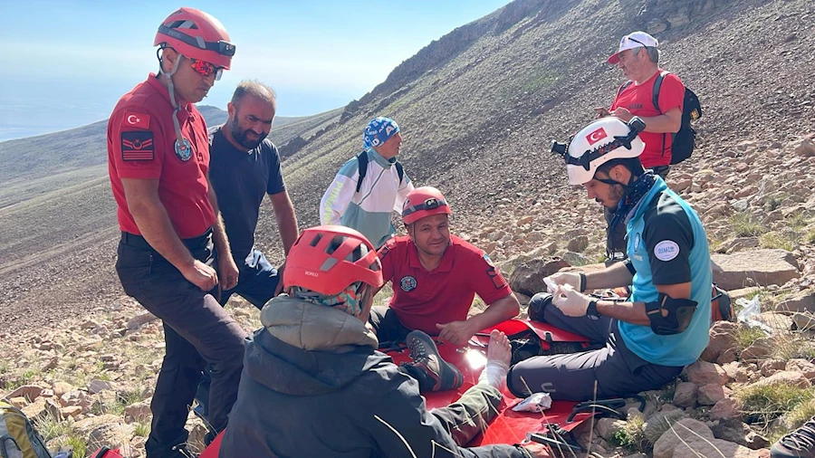 Erciyes Dağı'na zirve tırmanışı yaptıktan sonra inişe geçen iki dağcıdan A.K, ayağının burkulması sonucu yaralandı.