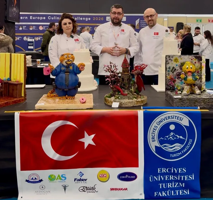 Uluslararası düzeyde gerçekleştirilen organizasyona Erciyes Üniversitesi (ERÜ)Turizm Fakültesi Dekan Yardımcısı Dr. Öğr. Üyesi Mustafa Ülker ve Dr. Öğr. Üyesi Tuncay Çanakçı ve Ela Butik Pastane İşletmecisi Sema Bayram katıldığı çalışma ile “Open Showpiece” kategorisinde altın madalya kazandı.