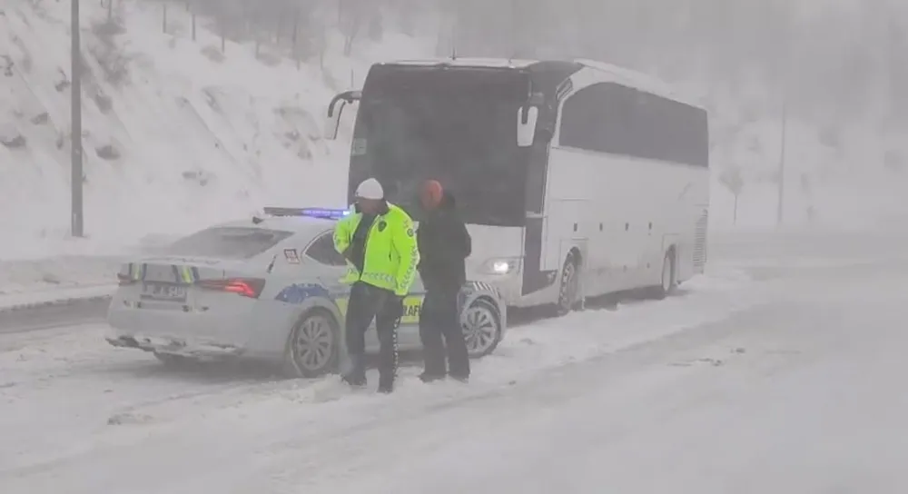 Trafik Denetleme Şube Müdürlüğü ekipleri, olumsuz hava koşulları nedeniyle yolda kalan tur otobüsüne kısa sürede ulaştı. Donma tehlikesiyle karşı karşıya kalan 44 vatandaş, bulundukları yerden güvenli bir şekilde tahliye edilerek ekipler tarafından şehir merkezine sevk edildi.