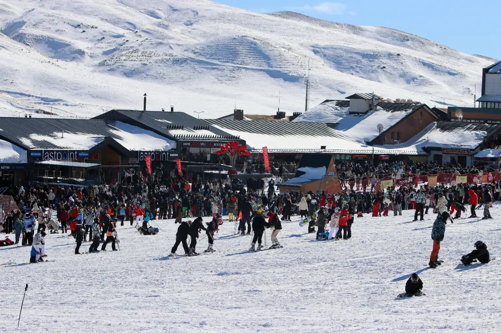 Hafta sonu ve güneşli havayı fırsat bilen binlerce yerli ve yabancı turistte Erciyes'e akın etti.