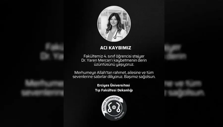 ERÜ’nün resmi sosyal medya hesabından yapılan paylaşımda, genç öğrencinin kaybının büyük üzüntü yarattığı belirtilerek, “Fakültemiz 4. sınıf öğrencisi stajyer Dr. Yaren Mercan’ı kaybetmenin derin üzüntüsünü yaşıyoruz” ifadelerine yer verildi.