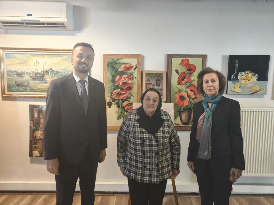 Sergiye 25 yıldır ressamlık yapan 80 yaşındaki Nimet teyze de kadınlara destek olmak için yaptığı eserleriyle katıldı.