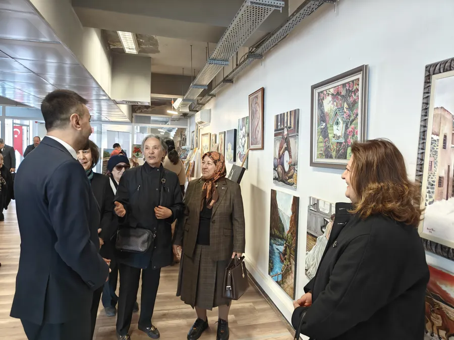 Her alanda tablo çizebildiğini söyleyen Nimet Gündoğdu, "Bütün eserlerde tablom var benim. Karışık olarak çalışmalar yapıyorum ve her tür resim yapabiliyorum. Bu sergiye 5 eserle katıldım. Eserimin bir tanesi Mustafa Kemal Atatürk’ü anlatıyor. 3 arkadaş yaptığımız resimlerimizi kapıya da koyduk. Diğer arkadaşlarımız da 5’er eserle katıldılar sergiye. Biz hepimiz Rıfat Hızlısoy’un öğrencileriyiz. Hocamız sağlık problemlerinden dolayı gelemedi. Biz müdürümüz Şükrü beye de ayrıca sevgi ve saygılarımızı sunuyoruz. Onun da bizde emeği çok. Allah razı olsun bizleri hiç yalnız bırakmıyor. Hep arkamızda destek oluyor. Bu durumda bütün arkadaşlarıma, müdürümüze ve emeği geçen herkese teşekkür ederiz. Ben bu sanatı 25 senedir yapıyorum. Hiç kimse evde oturmasın. Stres atmak, güzel vakit geçirmek bence değerli bir şey. Biz aynı zamanda hem evimize hem sosyal yaşantımıza vakit ayırabiliyorsak bize ne mutlu. Hepsine bu konuda çok saygı duyuyorum. Biz sanatla baş başayız ve her türlü stresimizi sanat alıyor elimizden" dedi.