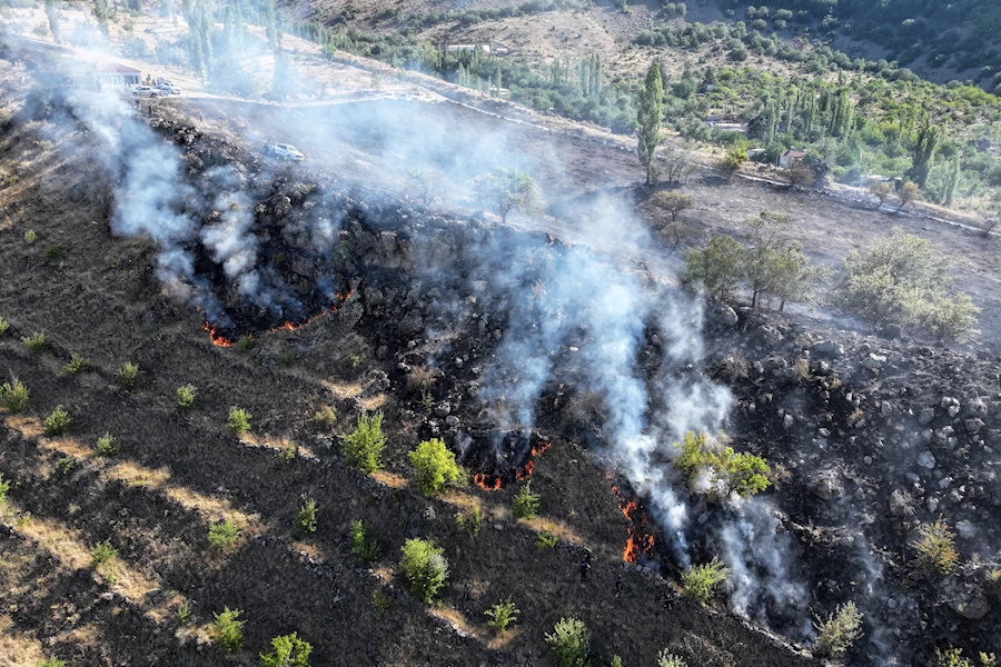 Rüzgarın etkisiyle kısa sürede yayılan alevlere itfaiye, Orman Bölge Müdürlüğü araçları ve Emniyet Müdürlüğü bünyesinde görevli iki Toplumsal Olayla Müdahale Aracı (TOMA) müdahale etti.