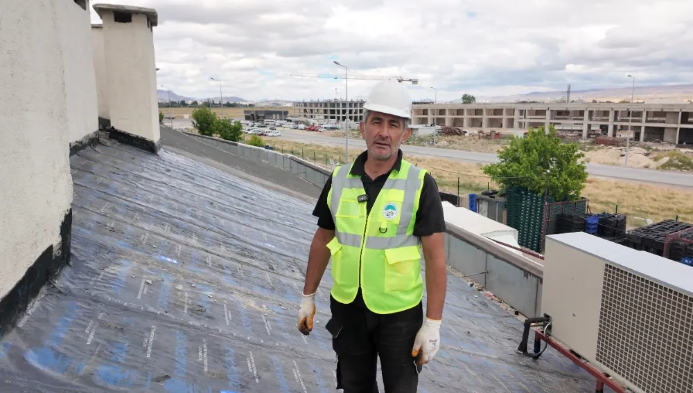 Ekipler, çatının 1200 metrekarelik alanındaki akıntıyı mebran uygulaması ile giderdi.