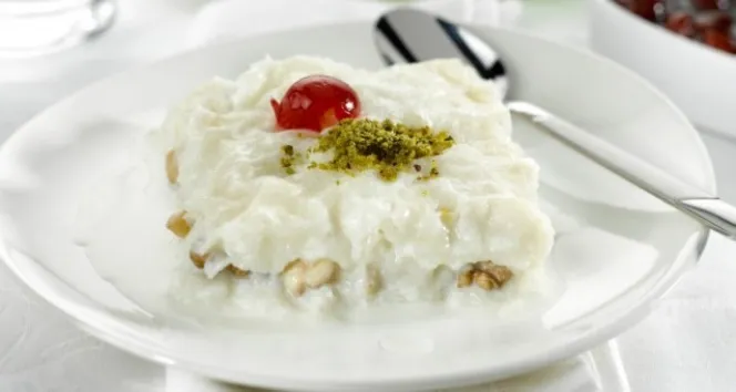 Cevizle zenginleşen, üzeri Antep fıstığı ve kiraz şekerlemesiyle süslenen güllaç, hem pratik hazırlanışı hem de şık sunumuyla dikkat çekiyor. Evde kısa sürede hazırlayabileceğiniz bu tarifle tam kıvamında bir güllaç yapmak mümkün.
