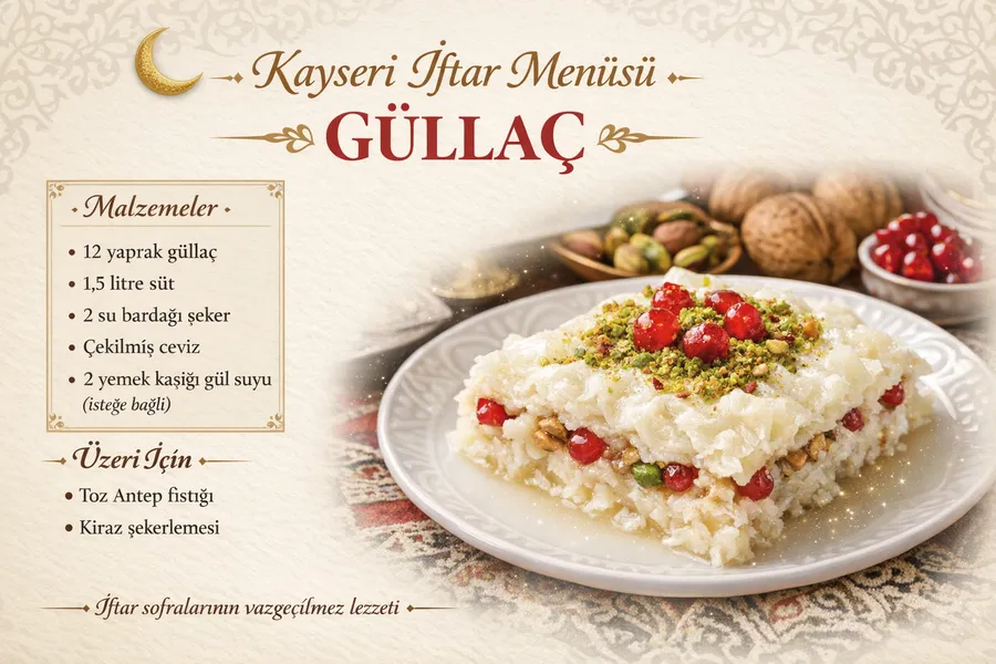 Ramazan ayı denince akla ilk gelen tatlılardan biri olan güllaç, hafif yapısı ve sütlü lezzetiyle iftar sonrası en çok tercih edilen tatlıların başında geliyor. Osmanlı mutfağından günümüze kadar ulaşan bu özel lezzet, özellikle mideyi yormaması nedeniyle sofralarda sıkça yer buluyor.