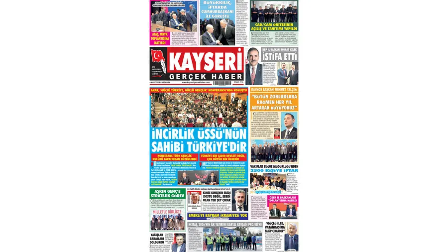 Gerçek Haber manşetinde ‘İncirlik Üssü’nün Sahibi Türkiye’dir’ başlığı ile AK Parti Kayseri Milletvekili ve TBMM Milli Savunma Komisyonu Başkanı Hulusi Akar ile MHP Kayseri Milletvekili Baki Ersoy’un Kayseri Üniversitesi’nde gerçekleştirdiği konferansa yer verdi.
