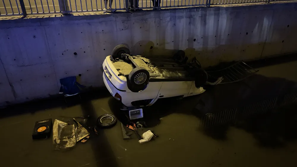İtfaiyenin yardımıyla kanaldan çıkarılan yaralı sürücü, hastaneye kaldırıldı.