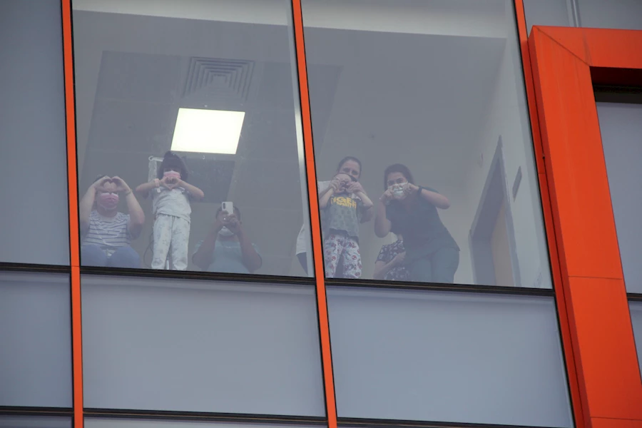 Hastanede yatan çocuklar ise aileleriyle etkinliği pencerelerden izledi.