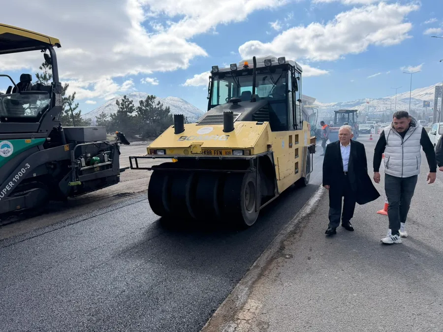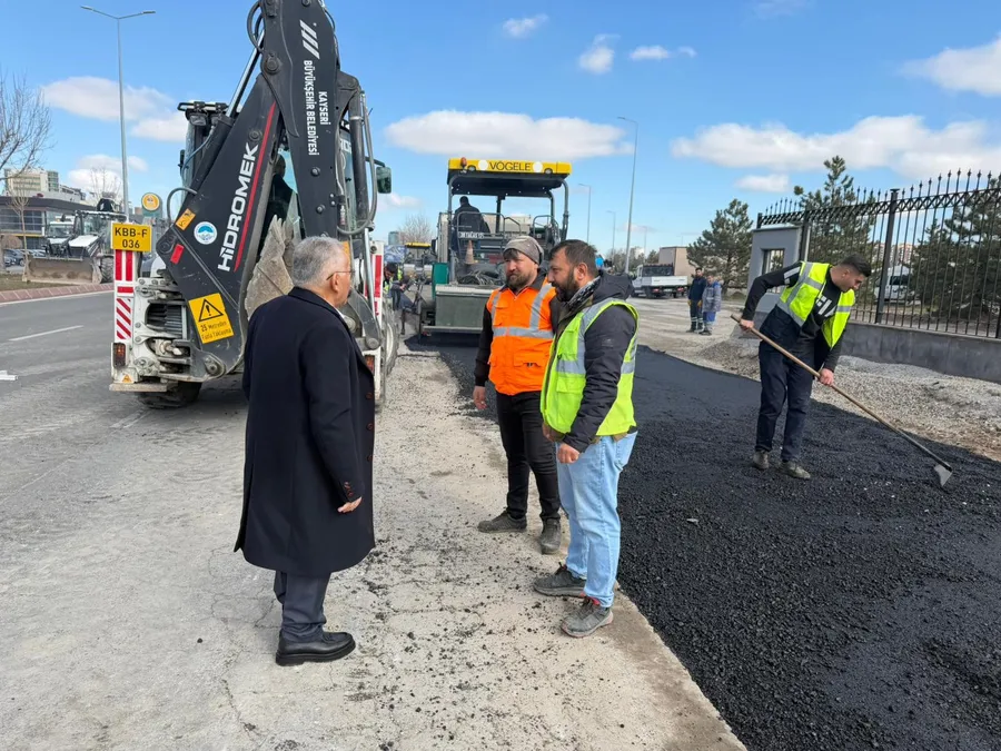 Mehmet Özhaseki Bulvarı üzerinde, Recep Tayyip Erdoğan Millet Bahçesi önünde gerçekleştirilen asfalt yenileme çalışmalarını sahada denetleyen Büyükkılıç, yol konforunu ve ulaşım güvenliğini arttırmaya yönelik çalışmaların hızla sürdüğünü ifade etti.