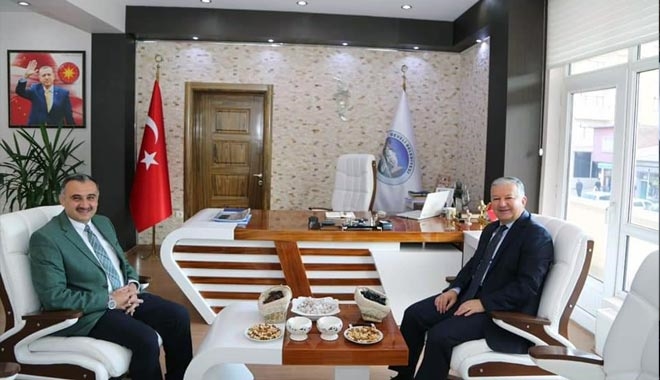 Develi Kaymakamı Murat Duru 31 Mart Yerel seçimlerinde tekrar Belediye Başkanlığına seçilen Develi Belediye Başkanı Mehmet Cabbar´a hayırlı olsun ziyaretinde bulundu.