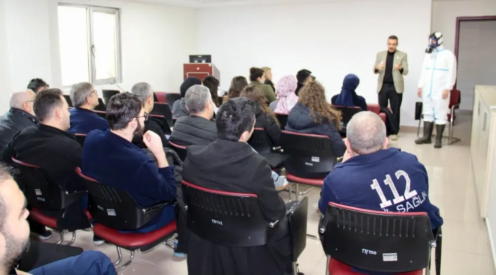 Kayseri Devlet Hastanesi Acil Servis personeline yönelik olarak “Hemovijilans ve KBRN (Kimyasal, Biyolojik, Radyolojik ve Nükleer Tehditler)” konularında eğitim verildi.