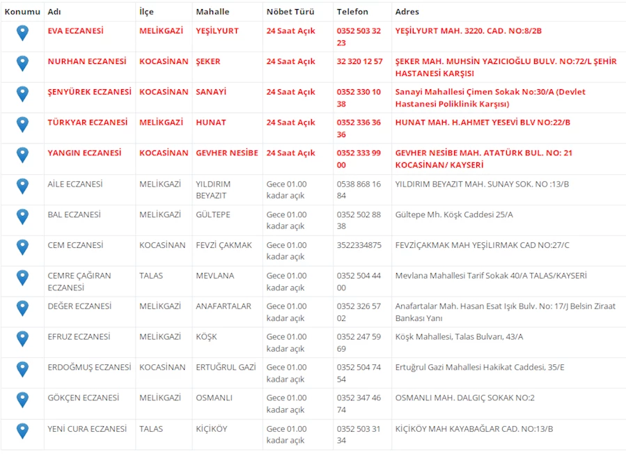 Kayseri'de vatandaşların acil sağlık ihtiyaçları için nöbetçi eczaneler önemli bir yere sahip. Kayseri’nin bugünkü nöbetçi eczanelerini sizler için derledik. 10 Ağustos Pazar nöbetçi eczaneler listesine buradan ulaşabilirsiniz. İşte 10 Ağustos nöbetçi eczaneler…