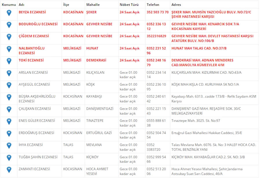 Kayseri'de vatandaşların acil sağlık ihtiyaçları için nöbetçi eczaneler önemli bir yere sahip. Kayseri’nin bugünkü nöbetçi eczanelerini sizler için derledik. 10 Haziran Salı nöbetçi eczaneler listesine buradan ulaşabilirsiniz. İşte 10 Haziran nöbetçi eczaneler…