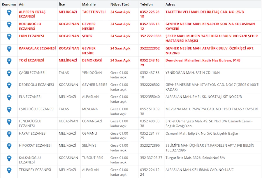 Kayseri'de vatandaşların acil sağlık ihtiyaçları için nöbetçi eczaneler önemli bir yere sahip. Kayseri’nin bugünkü nöbetçi eczanelerini sizler için derledik. 11 Ağustos Pazartesi nöbetçi eczaneler listesine buradan ulaşabilirsiniz. İşte 11 Ağustos nöbetçi eczaneler…