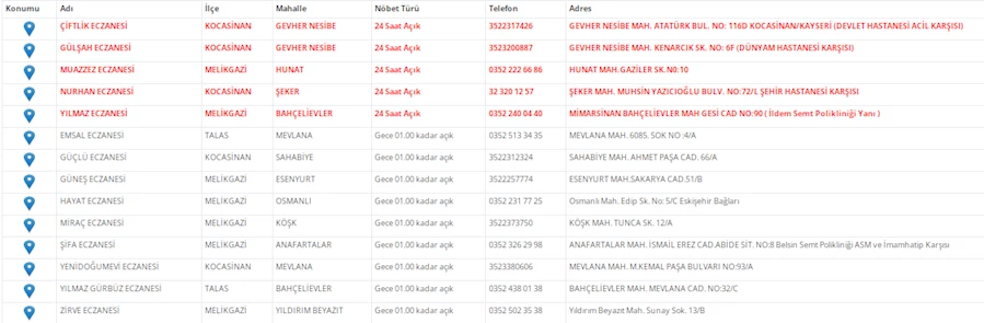 Kayseri'de vatandaşların acil sağlık ihtiyaçları için nöbetçi eczaneler önemli bir yere sahip. Kayseri’nin bugünkü nöbetçi eczanelerini sizler için derledik. 14 Mayıs Çarşamba nöbetçi eczaneler listesine buradan ulaşabilirsiniz. İşte 14 Mayıs nöbetçi eczaneler…