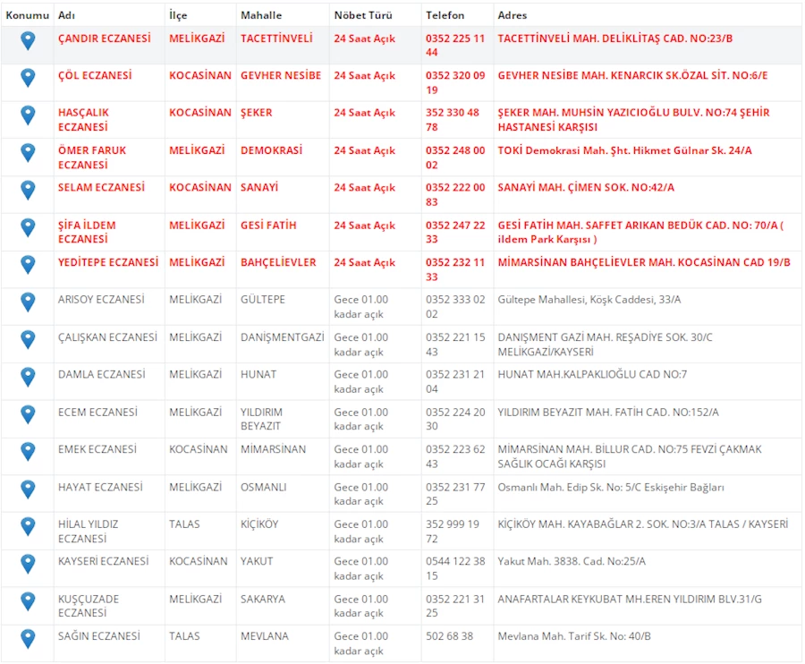 Kayseri'de vatandaşların acil sağlık ihtiyaçları için nöbetçi eczaneler önemli bir yere sahip. Kayseri’nin bugünkü nöbetçi eczanelerini sizler için derledik. 9 Ağustos Cumartesi nöbetçi eczaneler listesine buradan ulaşabilirsiniz. İşte 16 Ağustos nöbetçi eczaneler…