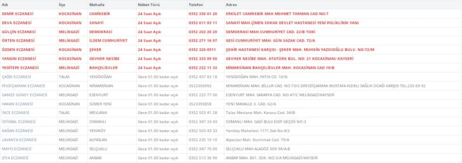 Kayseri'de vatandaşların acil sağlık ihtiyaçları için nöbetçi eczaneler önemli bir yere sahip. Kayseri’nin bugünkü nöbetçi eczanelerini sizler için derledik. 16 Kasım Cumartesi nöbetçi eczaneler listesine buradan ulaşabilirsiniz. İşte 16 Kasım nöbetçi eczaneler…