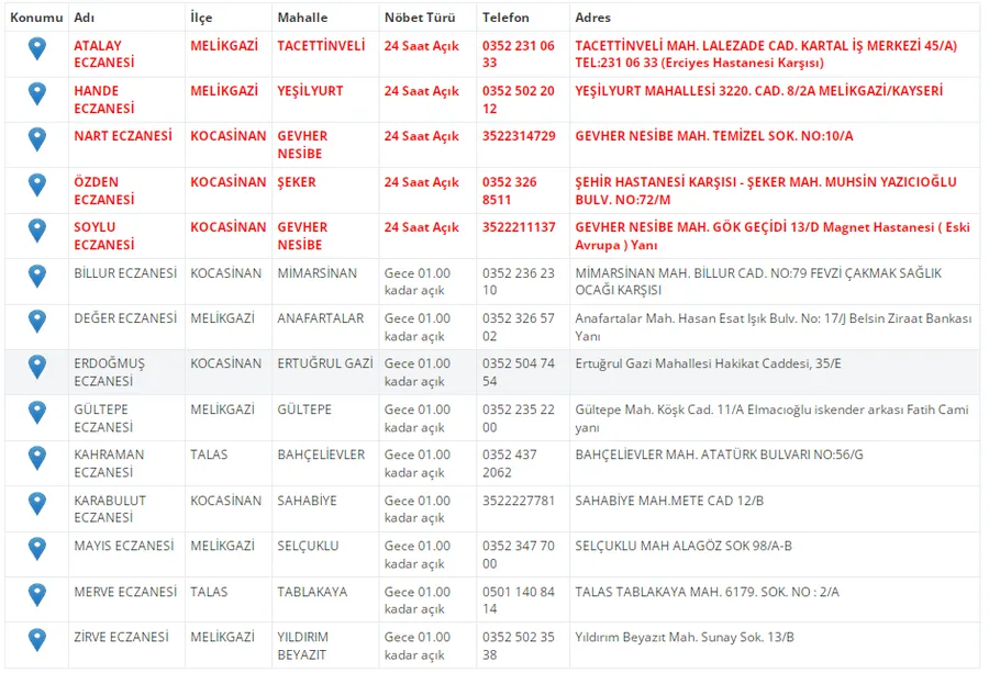 Kayseri'de vatandaşların acil sağlık ihtiyaçları için nöbetçi eczaneler önemli bir yere sahip. Kayseri’nin bugünkü nöbetçi eczanelerini sizler için derledik. 17 Ekim Cuma nöbetçi eczaneler listesine buradan ulaşabilirsiniz. İşte 17 Ekim nöbetçi eczaneler…