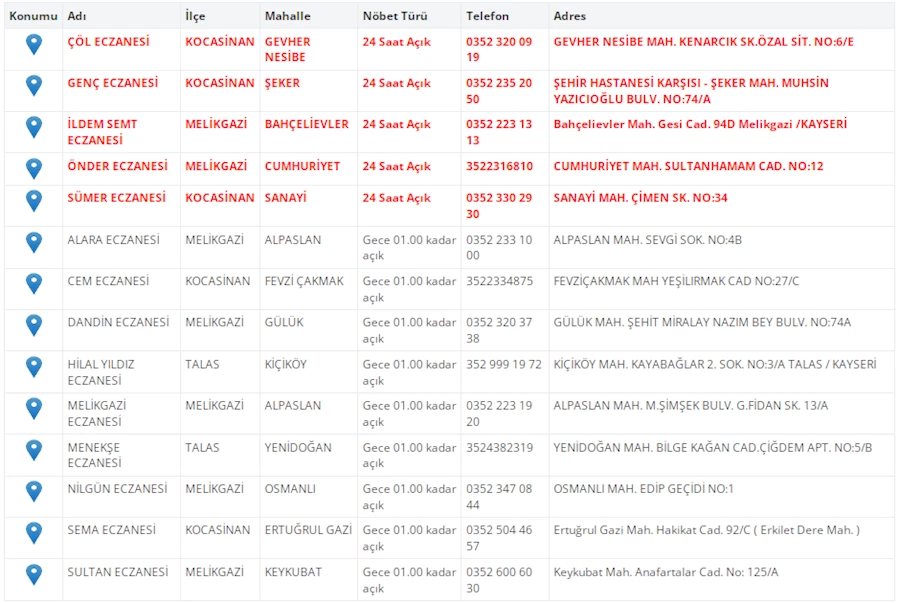 Kayseri'de vatandaşların acil sağlık ihtiyaçları için nöbetçi eczaneler önemli bir yere sahip. Kayseri’nin bugünkü nöbetçi eczanelerini sizler için derledik. 18 Haziran Çarşamba nöbetçi eczaneler listesine buradan ulaşabilirsiniz. İşte 18 Haziran nöbetçi eczaneler…