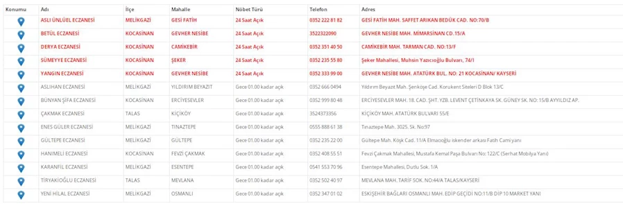 Kayseri'de bugünkü nöbetçi eczaneleri sizler için derledik. 7 Aralık 2025 Pazar nöbetçi eczaneler listesine haberimizden ulaşabilirsiniz. İşte Kayseri'deki nöbetçi eczaneler, Kayseri Haber Gazetesi'nin haberlerinde...