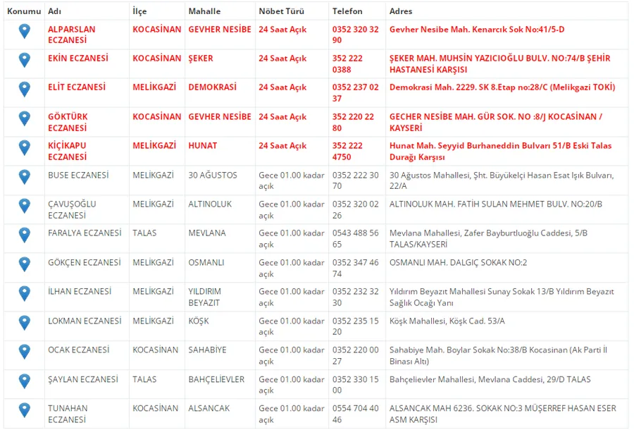 Kayseri'de vatandaşların acil sağlık ihtiyaçları için nöbetçi eczaneler önemli bir yere sahip. Kayseri’nin bugünkü nöbetçi eczanelerini sizler için derledik. 19 Ekim Pazar nöbetçi eczaneler listesine buradan ulaşabilirsiniz. İşte 19 Ekim nöbetçi eczaneler…