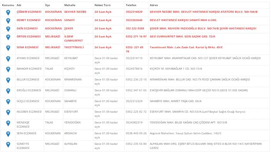 Kayseri'de vatandaşların acil sağlık ihtiyaçları için nöbetçi eczaneler önemli bir yere sahip. Kayseri’nin bugünkü nöbetçi eczanelerini sizler için derledik. 19 Ocak Pazar nöbetçi eczaneler listesine buradan ulaşabilirsiniz. İşte 19 Ocak nöbetçi eczaneler…