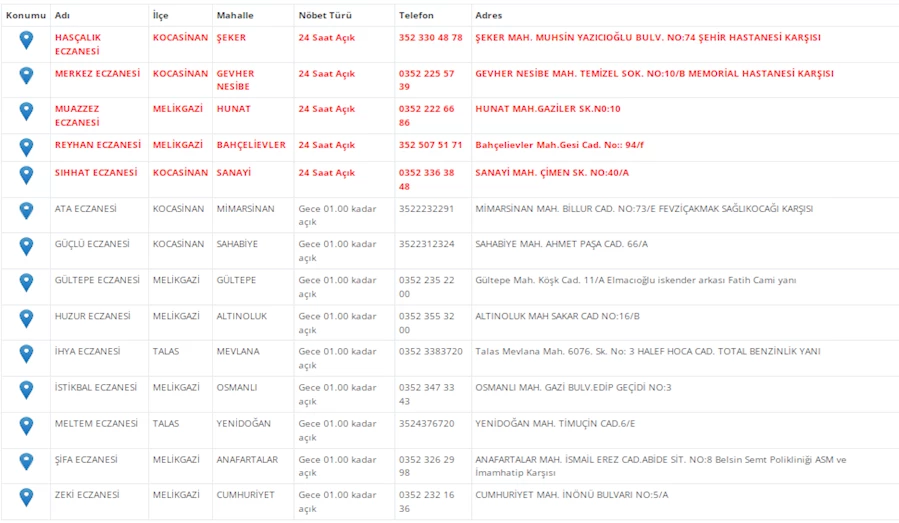 Kayseri'de vatandaşların acil sağlık ihtiyaçları için nöbetçi eczaneler önemli bir yere sahip. Kayseri’nin bugünkü nöbetçi eczanelerini sizler için derledik. 19 Şubat Çarşamba nöbetçi eczaneler listesine buradan ulaşabilirsiniz. İşte 19 Şubat nöbetçi eczaneler…