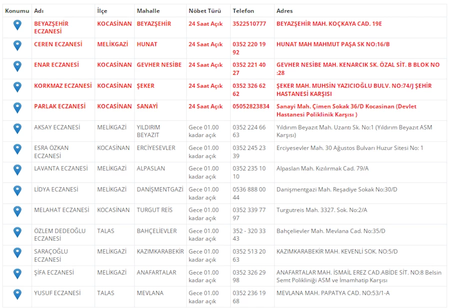 Kayseri'de hizmet verecek nöbetçi eczane listesini sizler için derledik. Şehirde 19 Aralık 2025 tarihinde 14 eczane akşam hizmet verecek. Detaylar haberimizde....