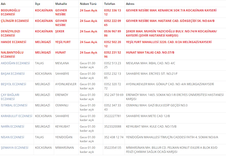 Kayseri'de hizmet verecek nöbetçi eczane listesini sizler için derledik. Şehirde 17 Aralık 2025 tarihinde 14 eczane akşam hizmet verecek. Detaylar Kayseri Haber'de...