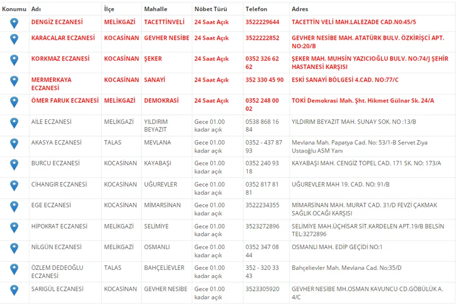Kayseri'de vatandaşların acil sağlık ihtiyaçları için nöbetçi eczaneler önemli bir yere sahip. Kayseri’nin bugünkü nöbetçi eczanelerini sizler için derledik. 20 Ekim Pazartesi nöbetçi eczaneler listesine buradan ulaşabilirsiniz. İşte 20 Ekim nöbetçi eczaneler…