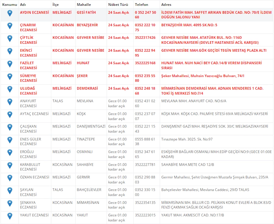 Kayseri'de bugünkü nöbetçi eczaneleri sizler için derledik. 18 Kasım 2025 Salı nöbetçi eczaneler listesine haberimizden ulaşabilirsiniz. İşte Kayseri'deki nöbetçi eczaneler, Kayseri Haber Gazetesi'nin haberlerinde...