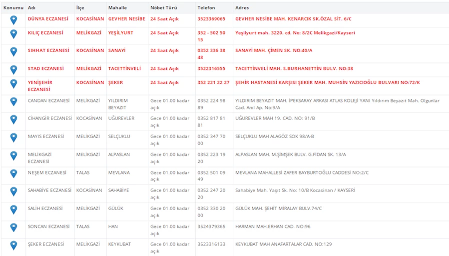 Kayseri'de vatandaşların acil sağlık ihtiyaçları için nöbetçi eczaneler önemli bir yere sahip. Kayseri’nin bugünkü nöbetçi eczanelerini sizler için derledik. 20 Ocak Çarşamba nöbetçi eczaneler listesine buradan ulaşabilirsiniz. İşte 20 Ocak nöbetçi eczaneler…