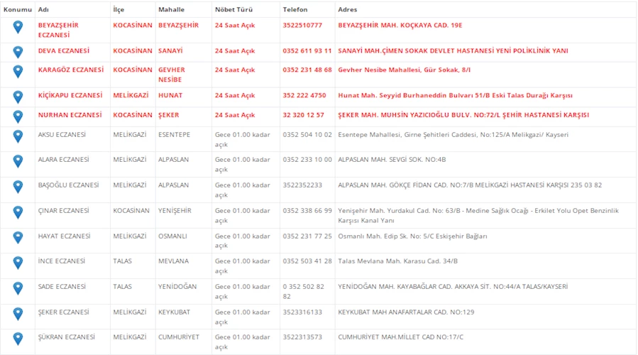 Kayseri nöbetçi eczaneler (20 Şubat)